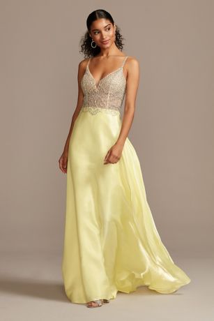 Crystal Embellished Illusion Bodice Satin Gown David S Bridal